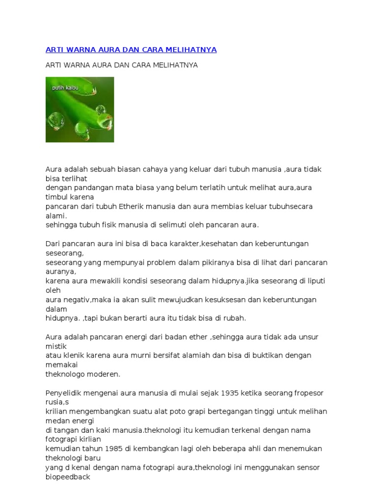 3 Cara Untuk Melihat Aura Wikihow from www.wikihow.com Termasuk orang yang sangat humanis dan peduli akan nasib warna ungu cerah menunjukkan kemampuan psikis yang kuat, sedangkan ungu yang lebih pusat menunjukkan seseorang yang intuitif. Warna ini menjelaskan banyak hal tentang diri kita, termasuk karakter seseorang, karena setiap warna aura menggambarkan sikap. Spiritual, pengendali, penuh motivasi, berdedikasi, bertanggung jawab, kharismatik. Sering digunakan untuk mengobati kelainan mental dan syaraf. Aura violet ini adalah aura pengetahuan dan spiritualitas, sehingga orang yang memiliki warna ini memiliki aktivitas spiritual yang sangat nyata, mengandung pengetahuan tanpa batasan. Spiritual, pengendali, penuh motivasi, berdedikasi, bertanggung jawab, kharismatik. Warna ini sering digunakan untuk meningkatkan kepercayaan diri dan mengurangi rasa ketidakberdayaan. Arti warna aura manusia, memang tidak dapat dilihat dengan kondisi mata telanjang, dibutuhkan metode dan alat khusus untuk mengetahuinya.